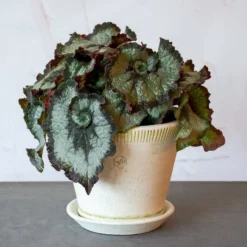 A member of the showy Ladyslippers® series of Cape Primroses (Streptocarpus) noted for their abundant flowers and number of leaves per plant, ‘Blue Ice’ bears lovely blooms in a pretty shade of light blue detailed with darker veins. In winter, enjoy the show indoors. In summer, take the display outside on a shady porch or deck. Shipped in a 5″ gray metal cachepot.