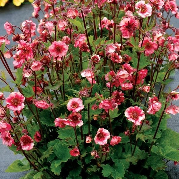 Geum is an extremely hardy genus of about 50 species, mostly from north or south temperate zones and the Arctic. Both flowers and foliage are attractive, and they are not particular about soil. They do best in sun and also thrive in light shade. They bloom early, but moisture and deadheading will bring flowers all season. Small Geums are splendid rock garden plants. Give the larger varieties front-row positions in the perennial border.