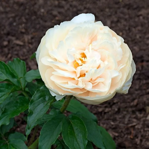 Peony ‘Pastelegance’ is a cross between Peonies ‘Salmon Dream’ and ‘Lemon Chiffon.’ This beauty produces elegant double blossoms in tones of pale pink and cream, adding considerable romance to the spring garden and bouquets. Stamens are woven throughout the blooms, which are held on sturdy stems and framed by generously sized glossy green foliage. Winner of the American Peony Society’s grand champion or “Queen of the Show” prize. Midseason.
